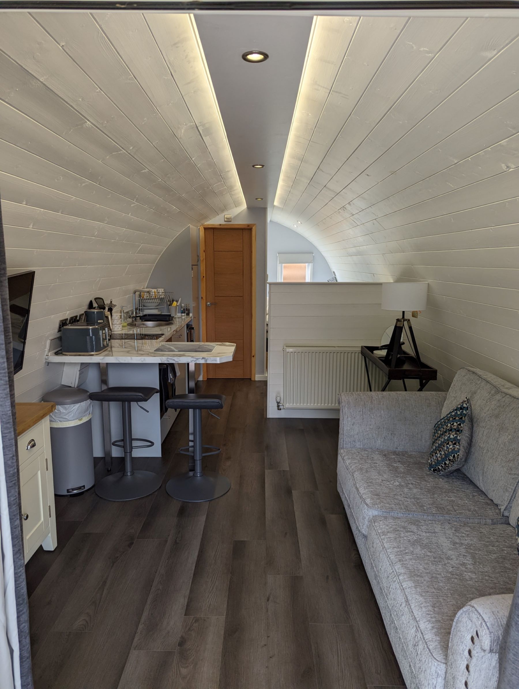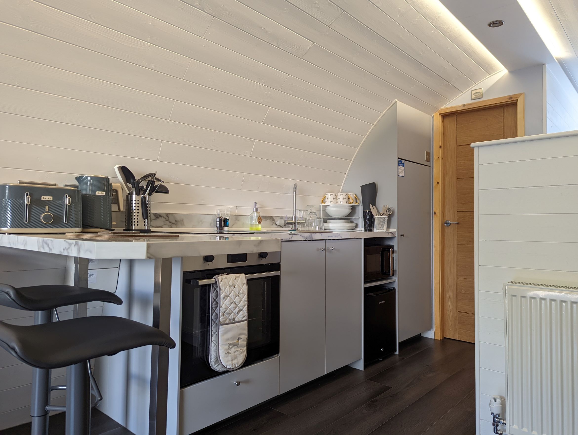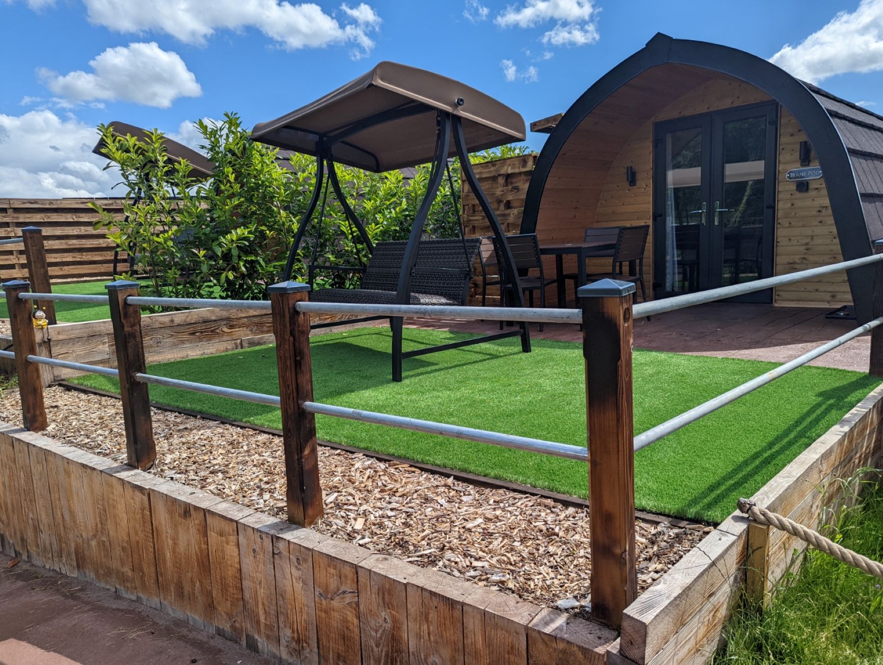 The smart ensuite accommodation on offer here is equally enticing, with a comfy double bed, well-equipped kitchen, TV, bedding and towels all coming as standard. Moving outside, there’s a spacious decking area with seating where you can soak up the peaceful atmosphere, and – arguably best of all – you have access to a private luxury hot tub just for the two of you.